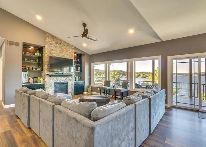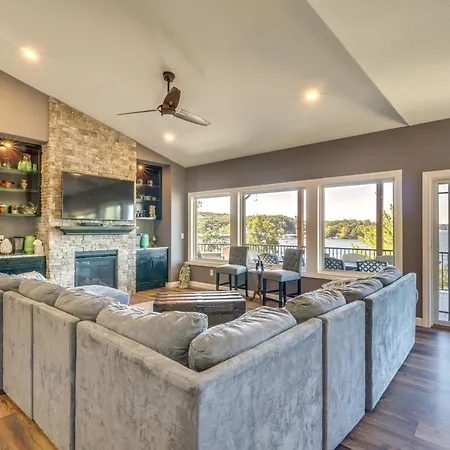 Spacious Lake Of The Ozarks Escape With Deck And Views Vila está situada a aproximadamente 10 minutos a pé de BigSurf Waterpark e disponibiliza jacuzzi. Ostentando um pátio, esta acomodação convida os hóspedes a visitar o Jolly Mon Indoor Water Park, localizado a aproximadamente 15 minutos de distância do carro.